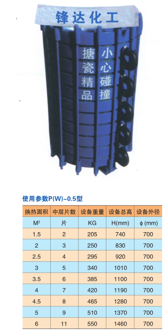 冷凝面積P(W)-0.5型號(hào)凹凸型中片每片為0.5m2,設(shè)備外徑700mm。